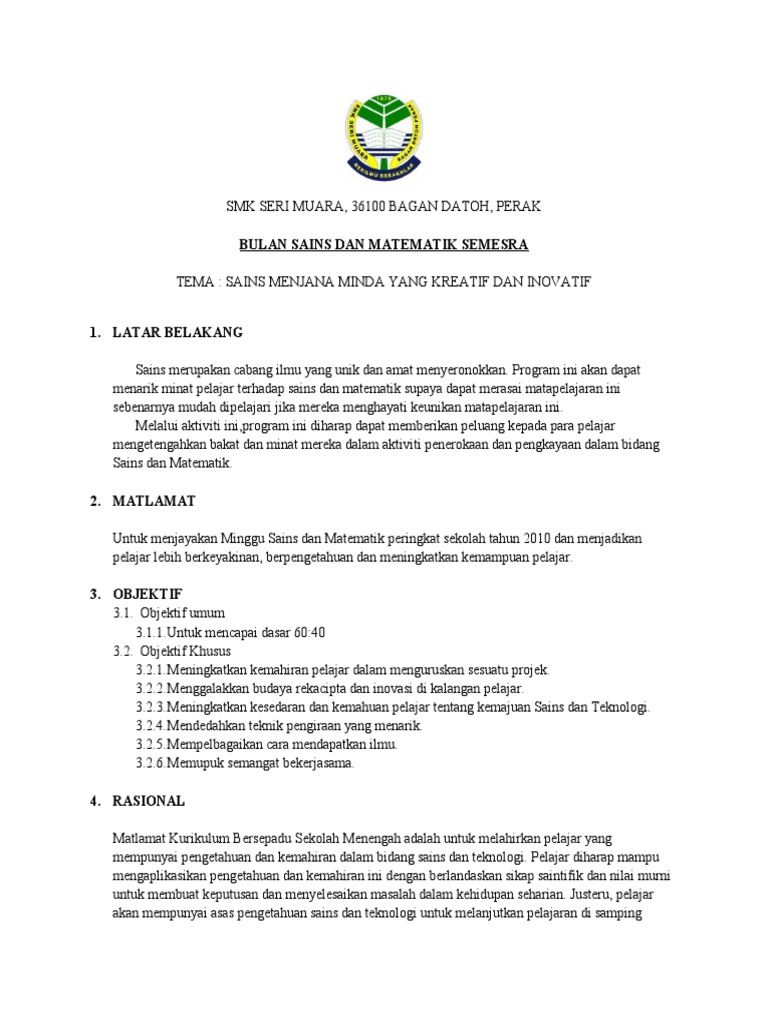 Kertas Kerja Minggu Sains Dan Matematik / Panitia sains dan panitia matematik 1.0tajuk kertas kerja kertas kerja sempena minggu sains dan matematik.. Contoh kertas kerja minggu panitia. Takwim jabatan sains dan matematik 2013 bil aktiviti tarikh catatan disember 2012 1 mesyuarat panitia 1 27. Semua ahli matematik dan sains. Kertas kerja dan surat perkhemahan. Persatuan matematik bertanggungjawab untuk pengembangan mata pelajaran matematik di.
